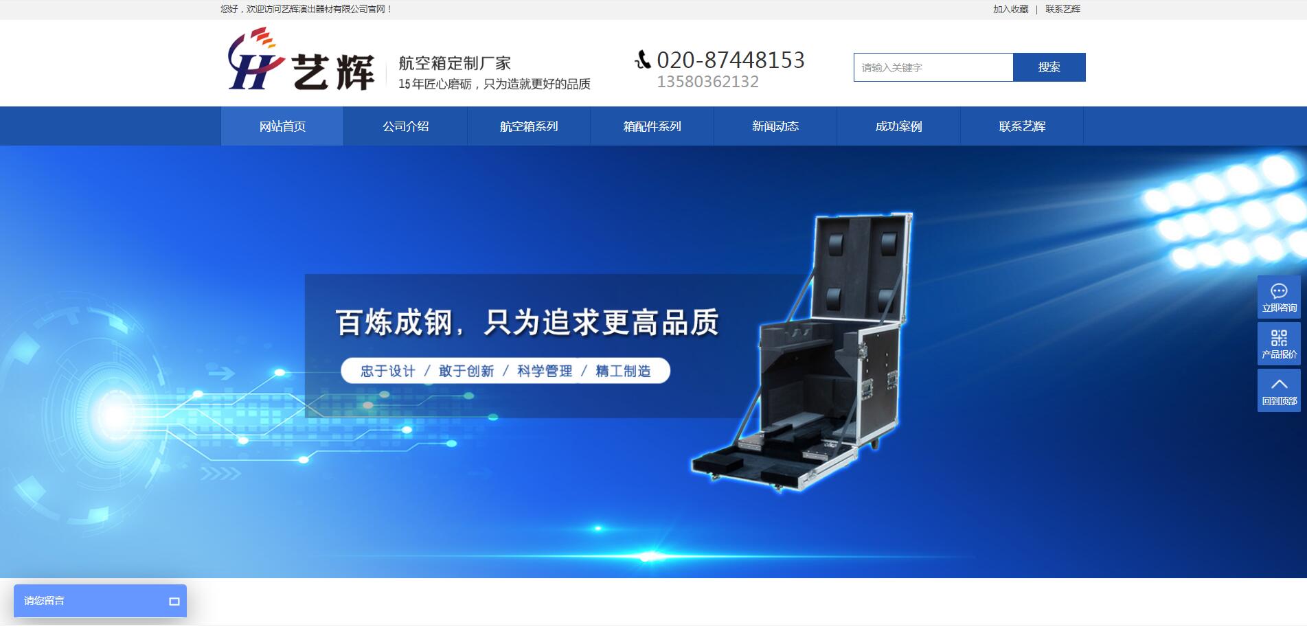 廣州市藝輝演出器材有限公司于2008年創(chuàng)立。是一家集設(shè)計(jì),開發(fā),生產(chǎn),銷售于一體的航空箱定制廠家。公司廠址位于廣州市白云區(qū),廠房占地面積約6000平方米,設(shè)備齊全,生產(chǎn)規(guī)模較大,技術(shù)人員均有15年以上行業(yè)經(jīng)驗(yàn)。主要生產(chǎn)各種功放機(jī)航空箱,音箱航空箱,調(diào)音臺(tái)航空箱,工具航空箱,線材航空箱,搖頭燈航空箱,LED燈航空箱,儀器航空箱,樂器航空箱,顯示屏航空箱,打碟機(jī)航空箱等等。